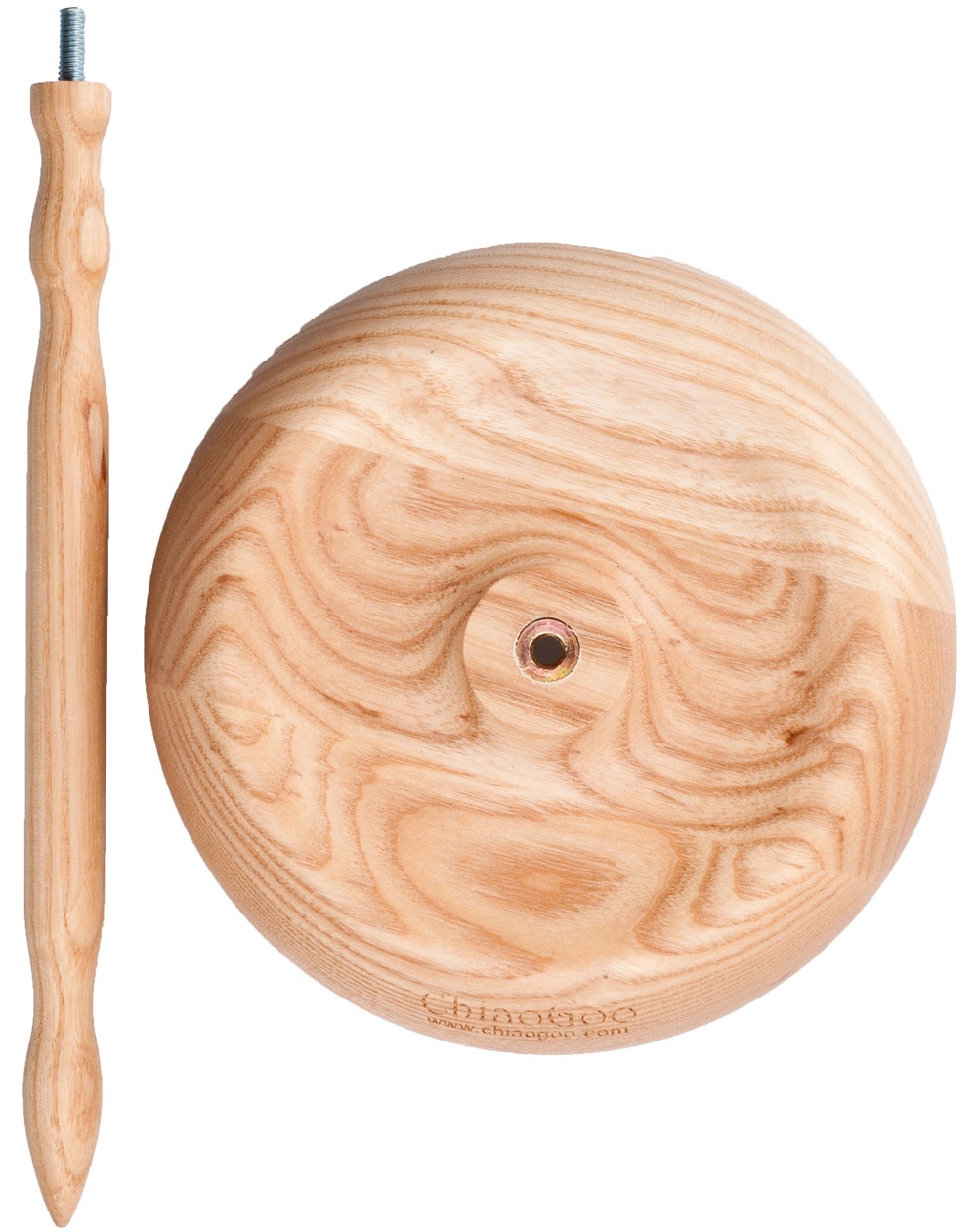 Держатель мотка (yarn butler) от ChiaoGoo очень удобное приспособление. Представляет собой два диска, которые вращаются между собой и стержень, на который можно поместить моток пряжи или бобину, для лучшего соскальзывания нити, соответственно более удобного и скоростного вязания.