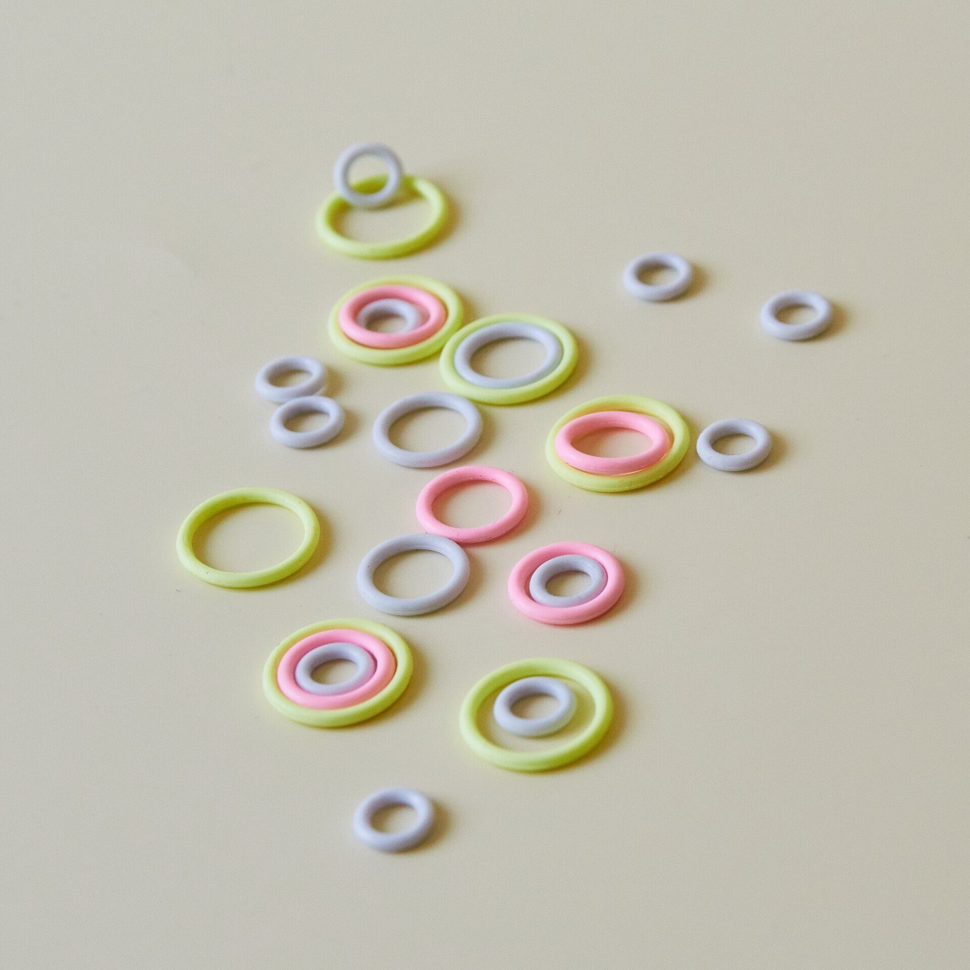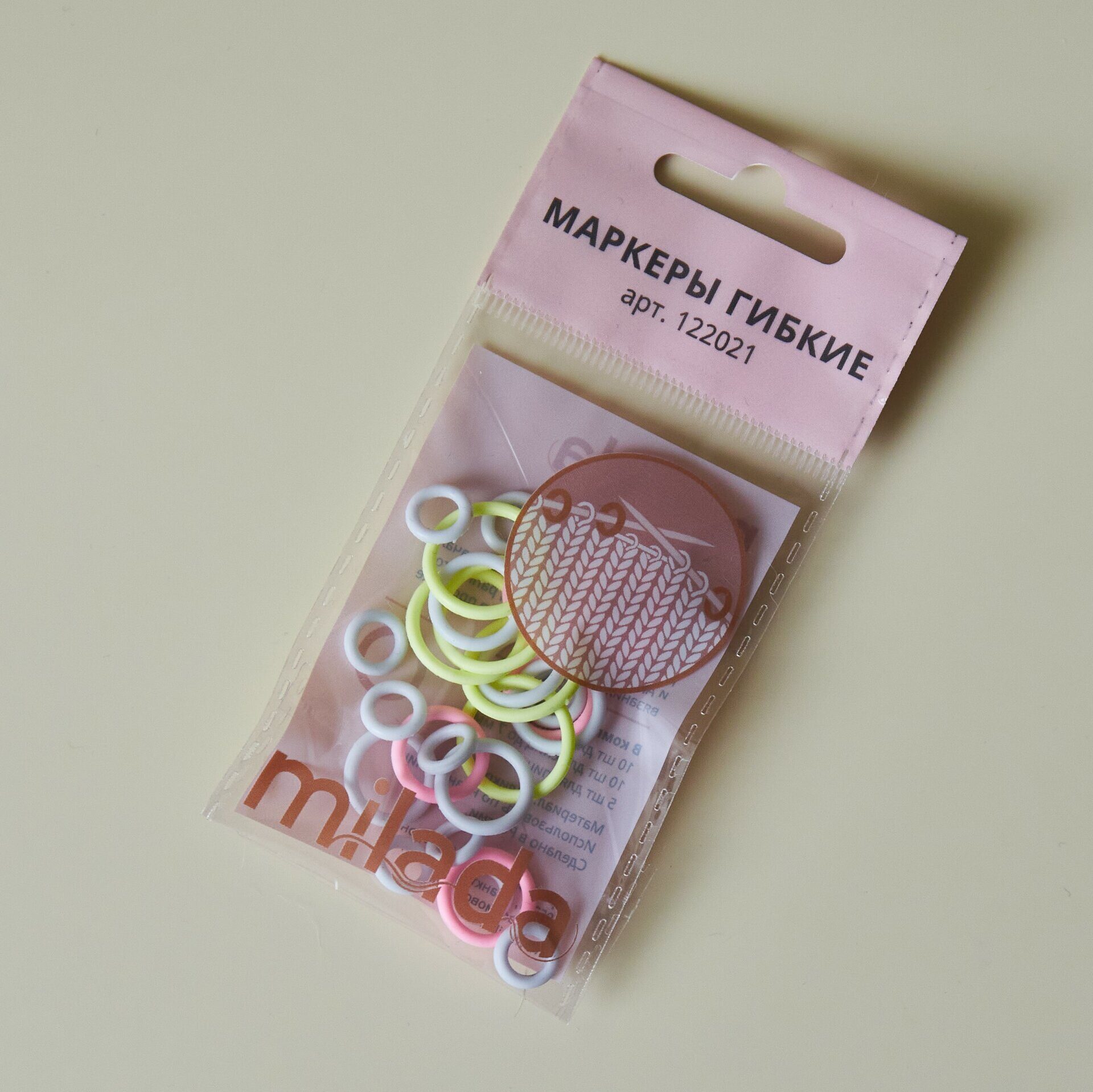 Набор гибких маркеров-колечек от российского бренда Milada. Состоит из 25 колечек: 10 шт для спиц диаметром до 5 мм, 10 шт для спиц до 7 мм, 5 шт для спиц до 10 мм. Маркеры пластичные, мягкие, это позволяет сделать процесс вязания более комфортным. Удобно использовать при вязании по кругу для обозначения начала ряда или других важных моментов.